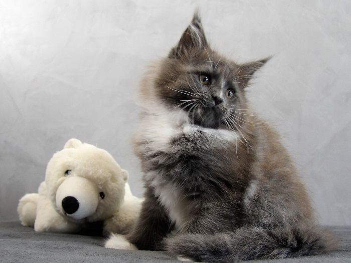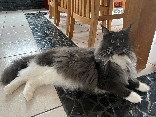 Sie hat eine kräftige dicke Schnauze und das dazu passende massive Kinn. Ihre Ohren sind mit super dicken Luchspinseln ausgestattet. Das perfekte exzellente Profil, ein wunderschönes dichtes und lange Fell, runden ihre wunderbaren Typ ab.