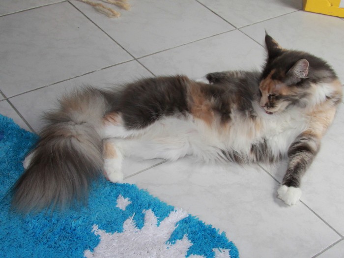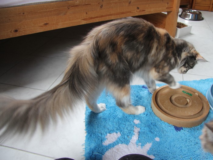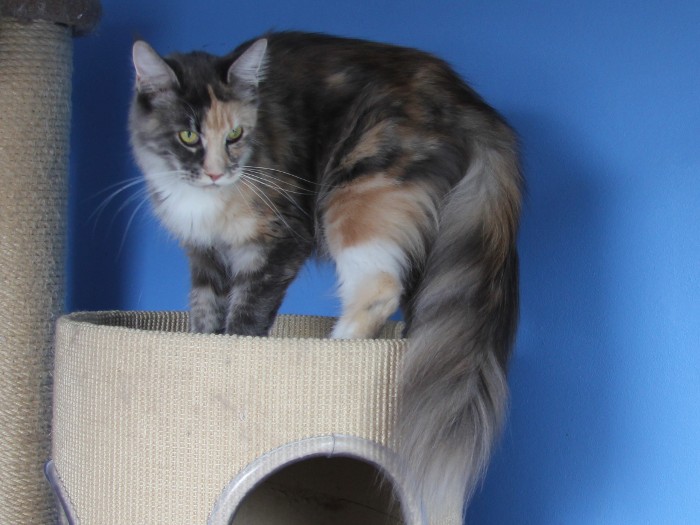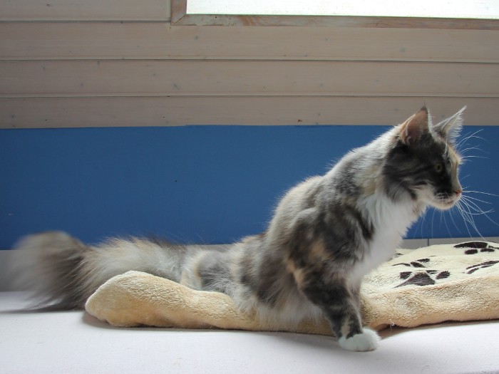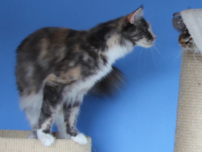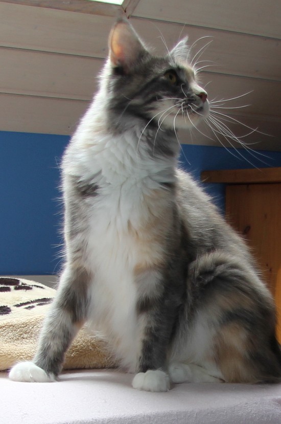 Geb. am 04.07.2013 Farbe: blue torbie classic tabby white HCM Gen Test: Eltern N/N FIV/ FeLV: negativ Vater: CH. Waldemaine Kajus – Fun Mutter: